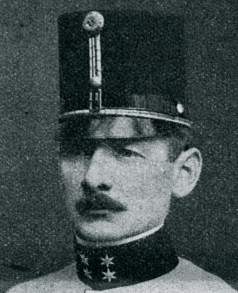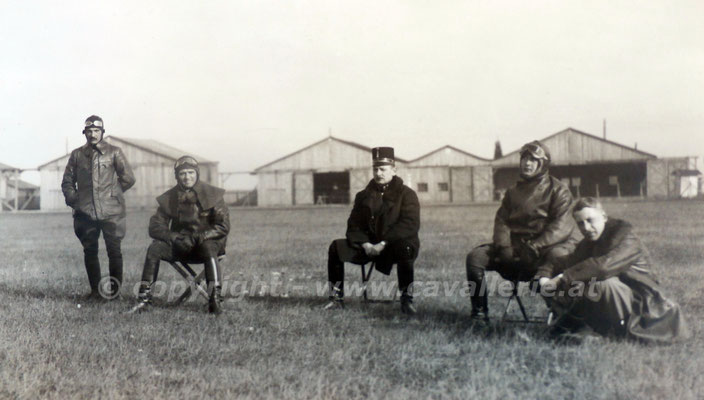 Oberleutnant Phillip Blaschke von Zwornikkirchen - Leutnant Rzemenowsky von Trautenegg - Oberleutnant Miecislaus Miller - Leutnant Bela Losonczy von Losoncz - (Person ganz rechts: derzeit unerkannt, Robert Eyb?).