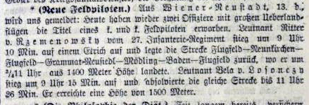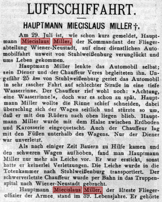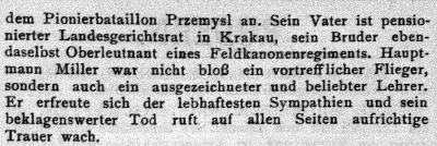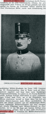 2.: Selbiger Artikel, aus dem hervorgeht, dass Miller der erste österr. Offizier mit Fliegerprüfung war.